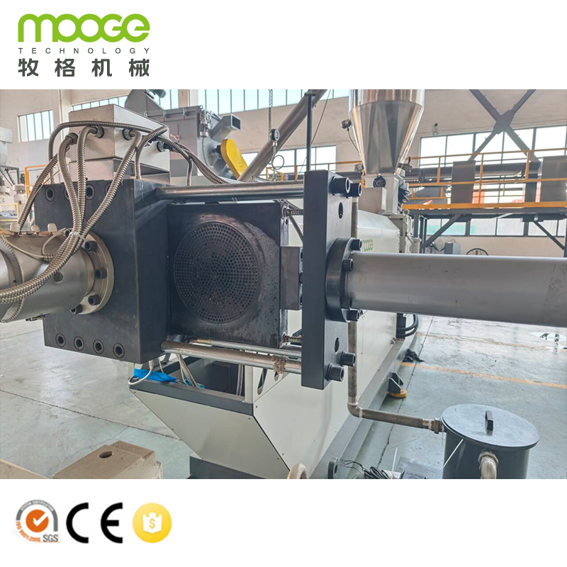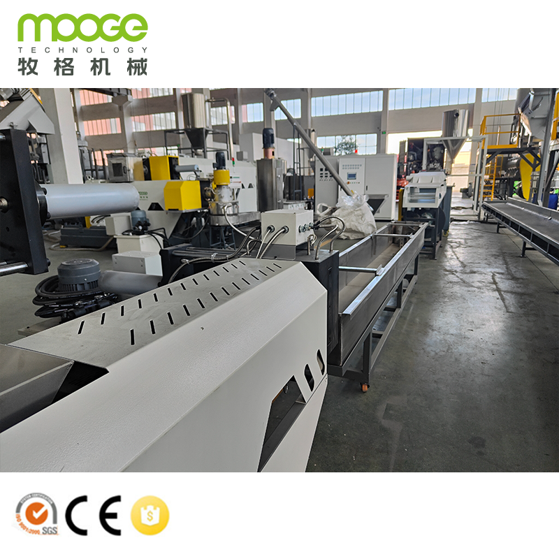 이 폐기물 Pp Pe 재활용 플라스틱 PET 플라크 펠레티징 기계는 MOOGE TECH에 의해 설계되고 제조되며 HDPE, PP, PC, PS, ABS 등 폐기물 플라스틱 딱딱한 재료에 널리 사용됩니다.